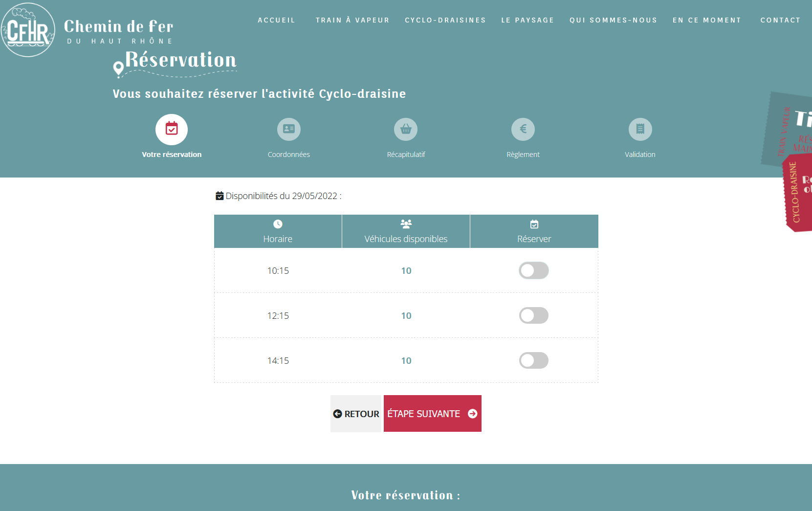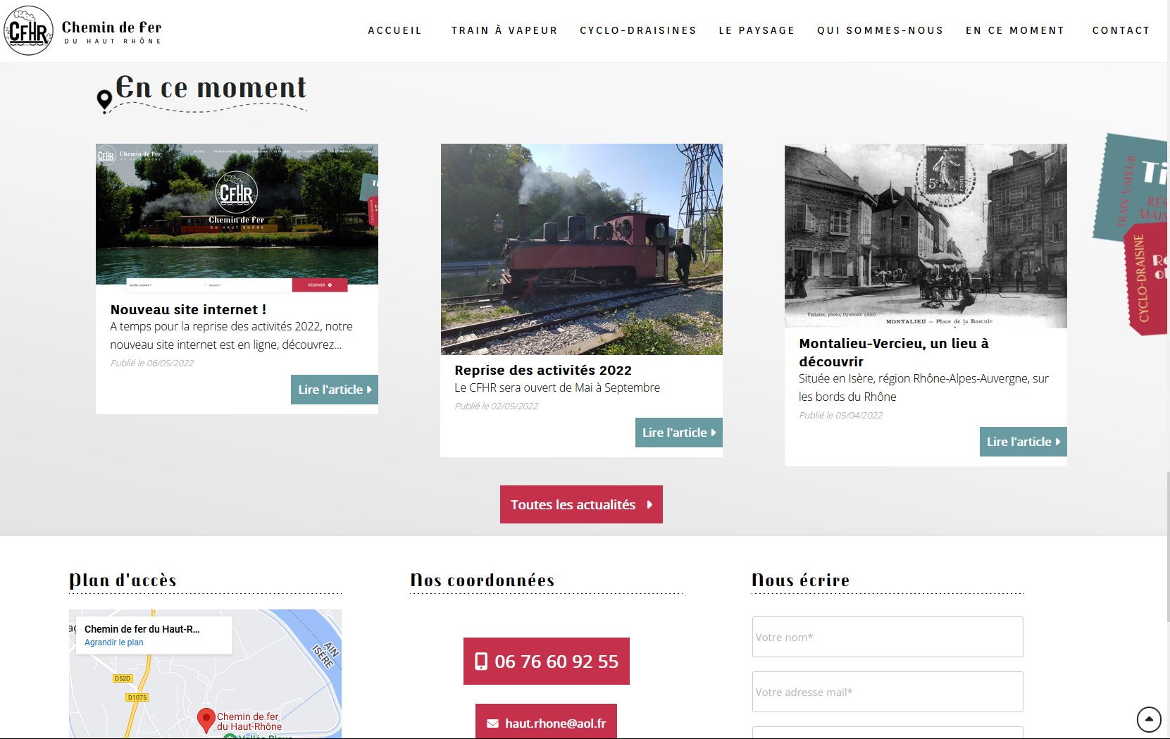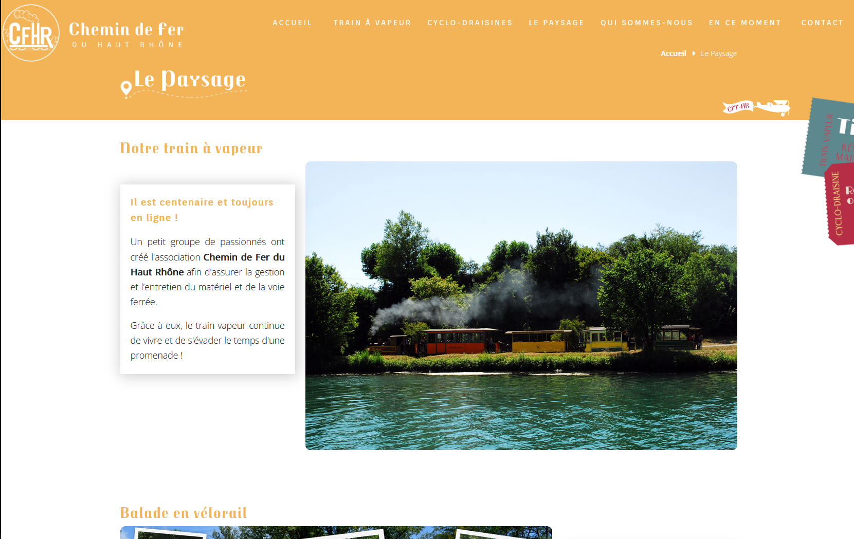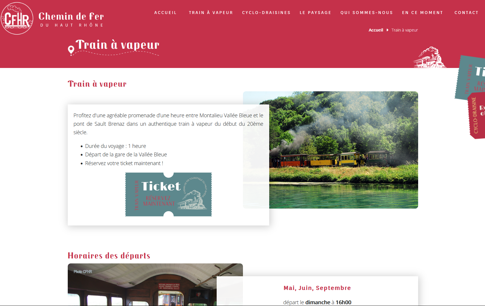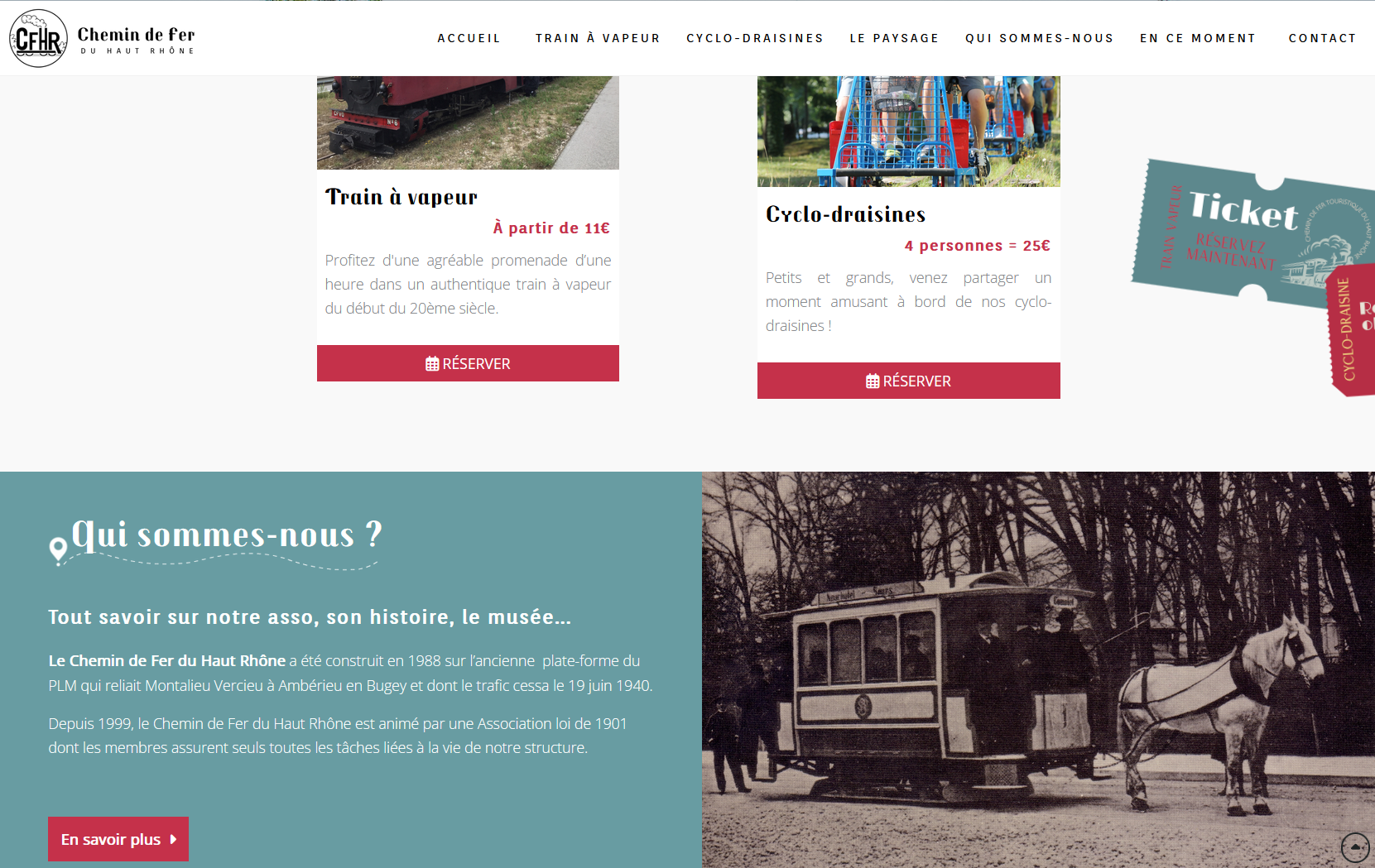L'association du Chemin de Fer du Haut Rhône m'a confié la refonte de son site internet, avec développement d'un système de réservation et paiement en ligne.